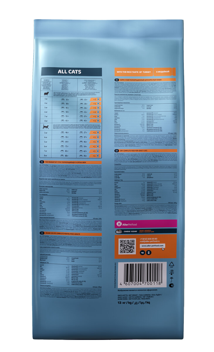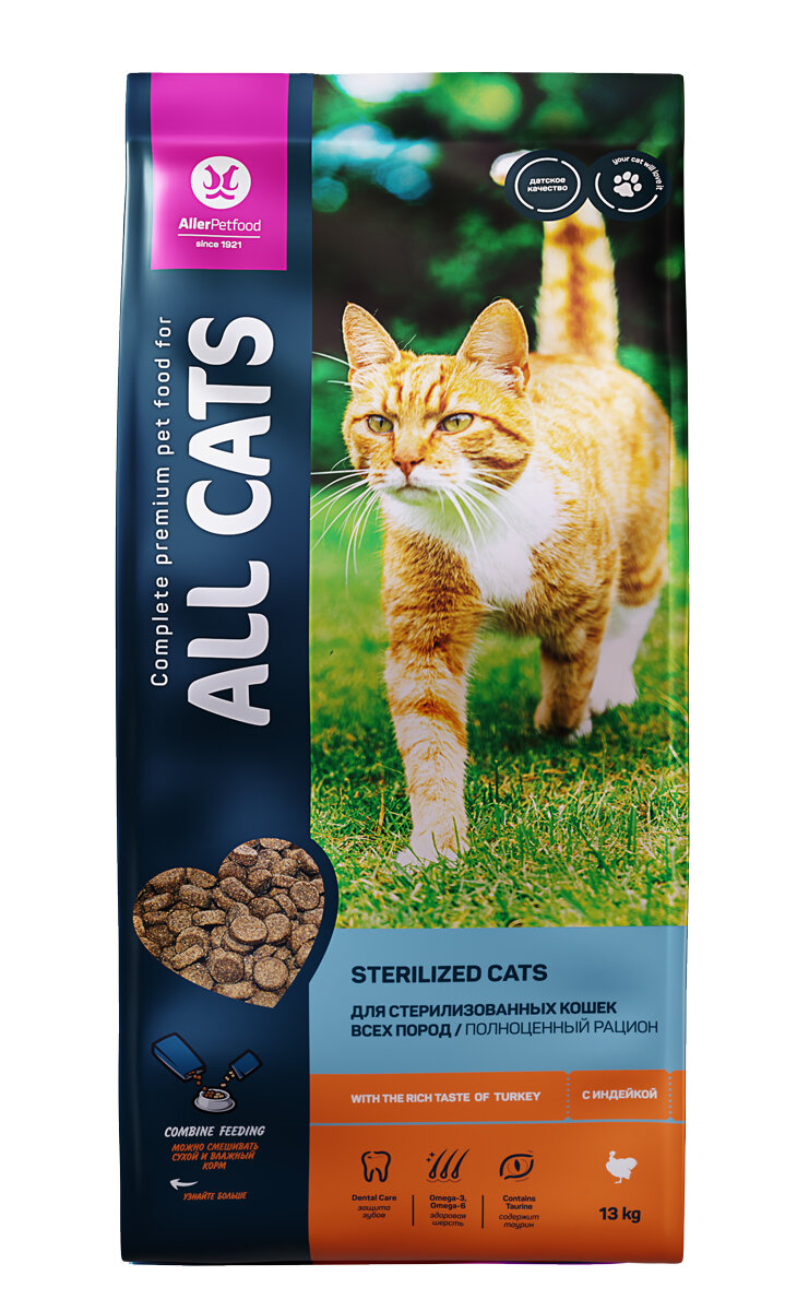 Сухой корм 2,4 кг для стерилизованных кошек ALL CATS индейка полнорационный/ Аллер Петфуд