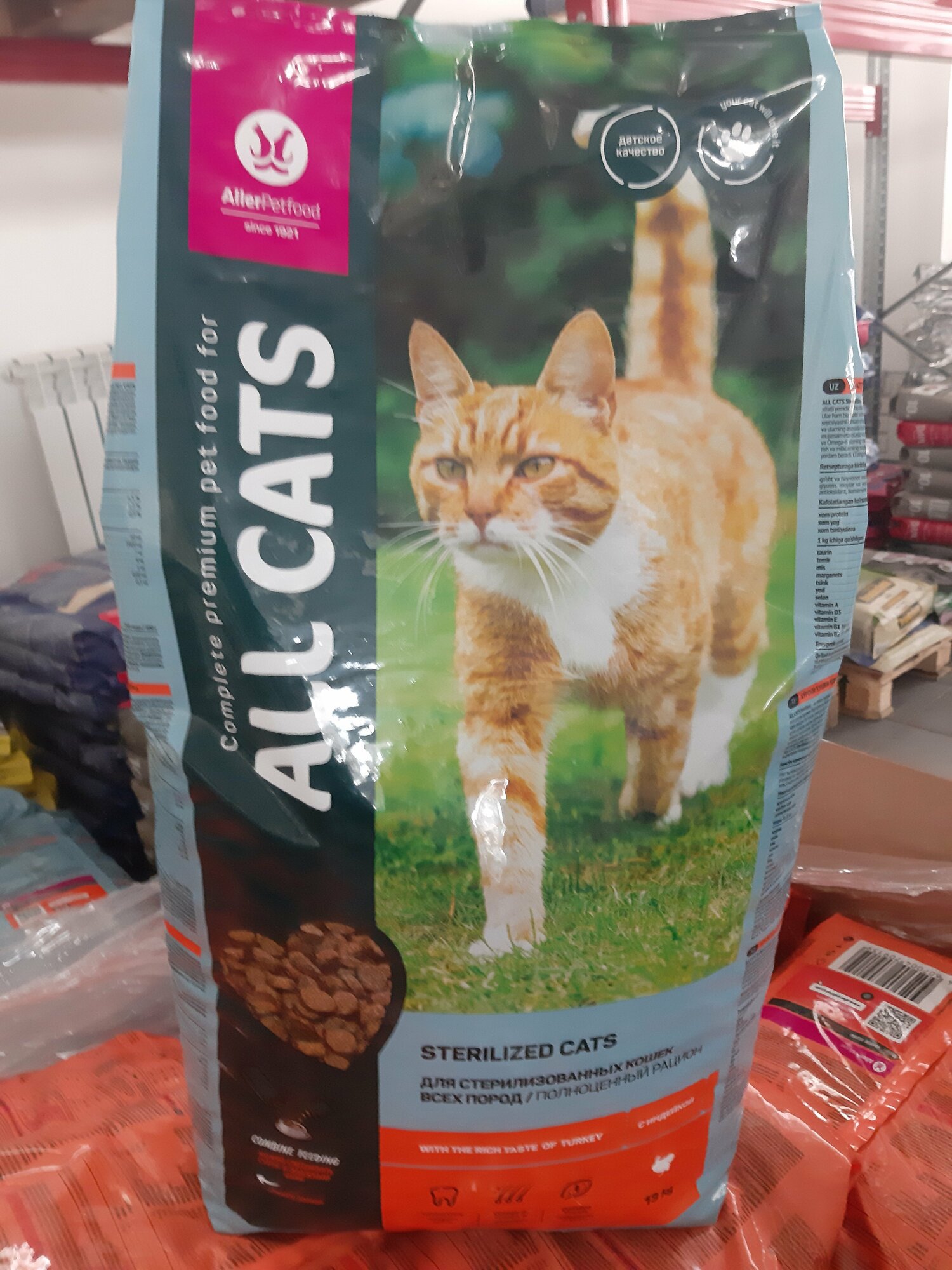 Ниже Вы можете прочитать отзывы на Корм сухой для стерилизованных кошек ALL CATS с индейкой 13кг, ознакомится с подробными характеристиками, посмотреть интересные обзоры и фотографии на Корм сухой для стерилизованных кошек ALL CATS с индейкой 13кг.