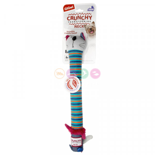 Игрушка для собак Gigwi CRUNCHY NECK Кот с пищалкой с хрустящей шеей 28 см.