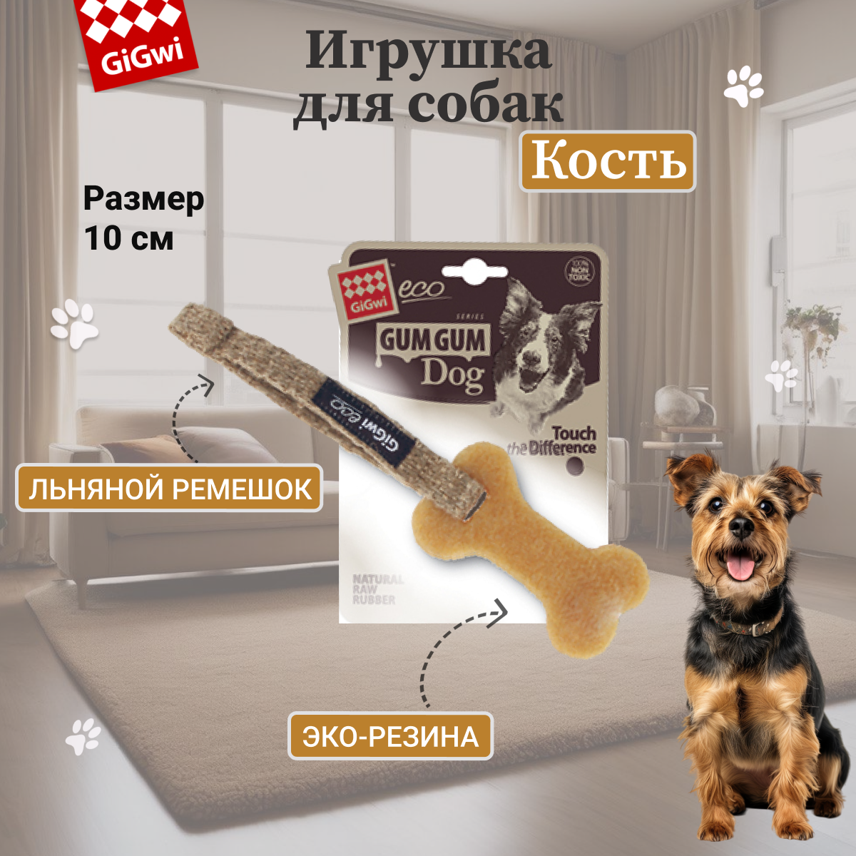 Игрушка для собак GUM GUM Dog кость льняной ремешок эко-резина 10 СМ