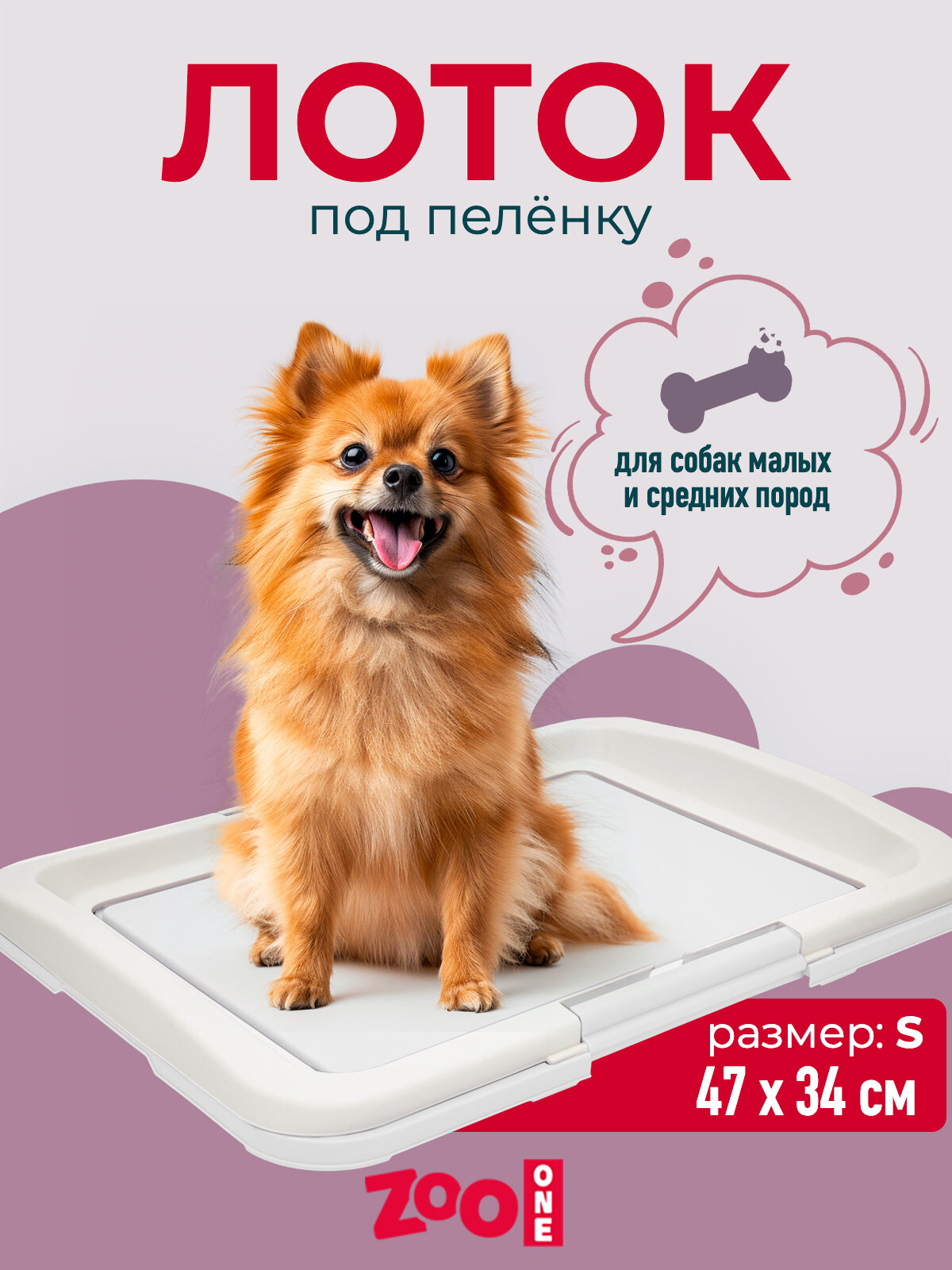 Туалет (ZooOne) P102-03 (48*35*6) для собак, розовый