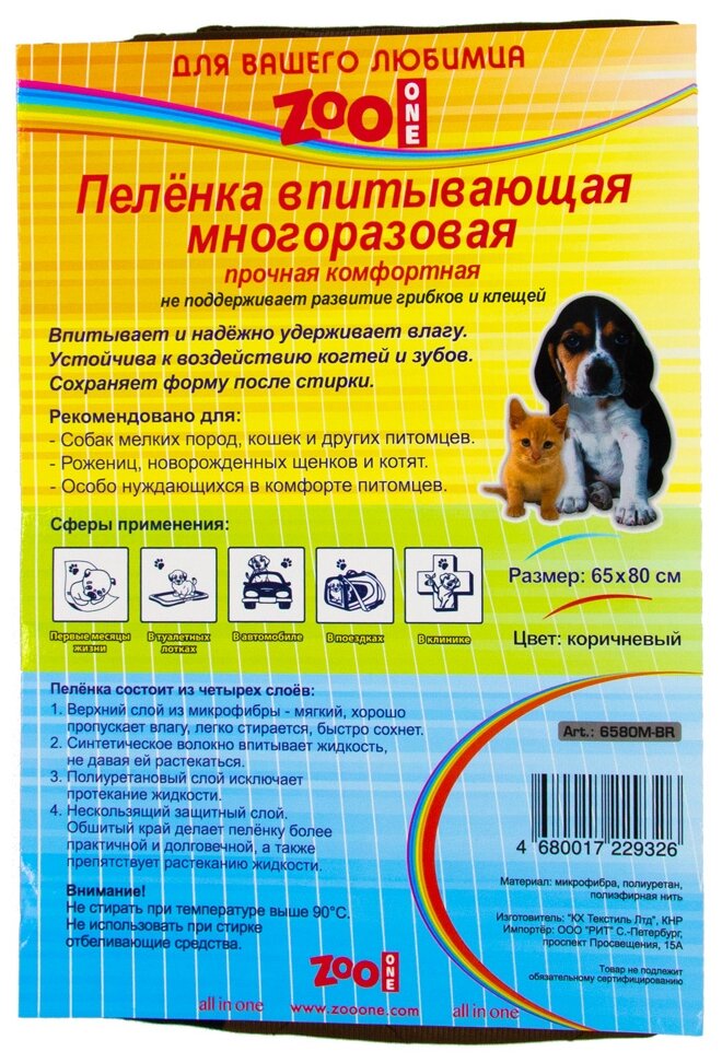 СохранитьПеленка (ZooOne) впитывающая многоразовая, коричневая 65*80 см интересное: