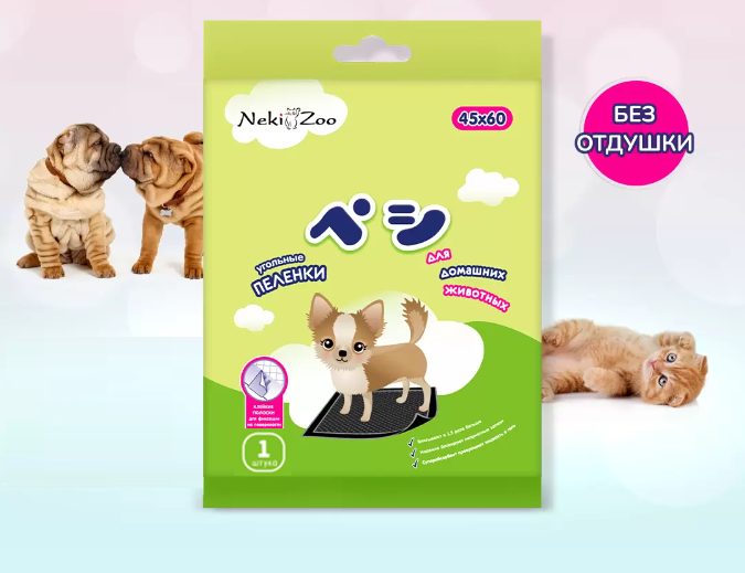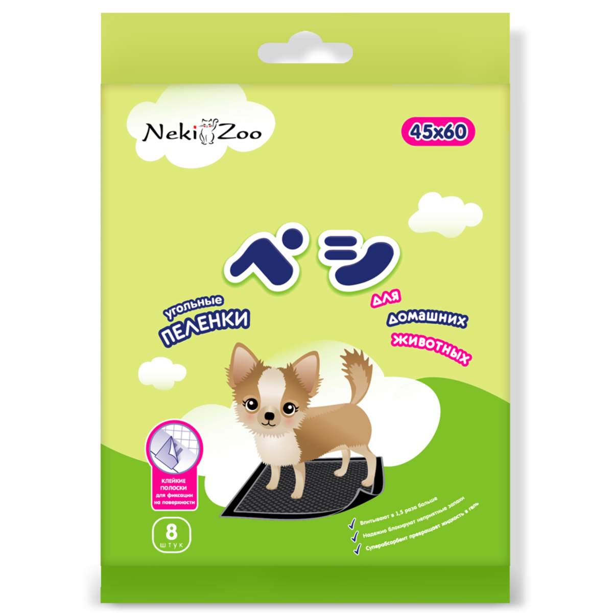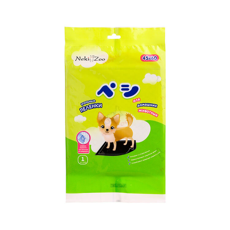 Neki zoo пеленки для домашних животных, гигиенические, впитывающие, одноразовые, угольные, 45х60 см, 8 шт.