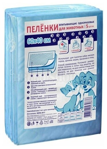 Пеленка-подстилка впитывающая одноразовая Petmil 60*60 см для животных, упаковка 5 шт