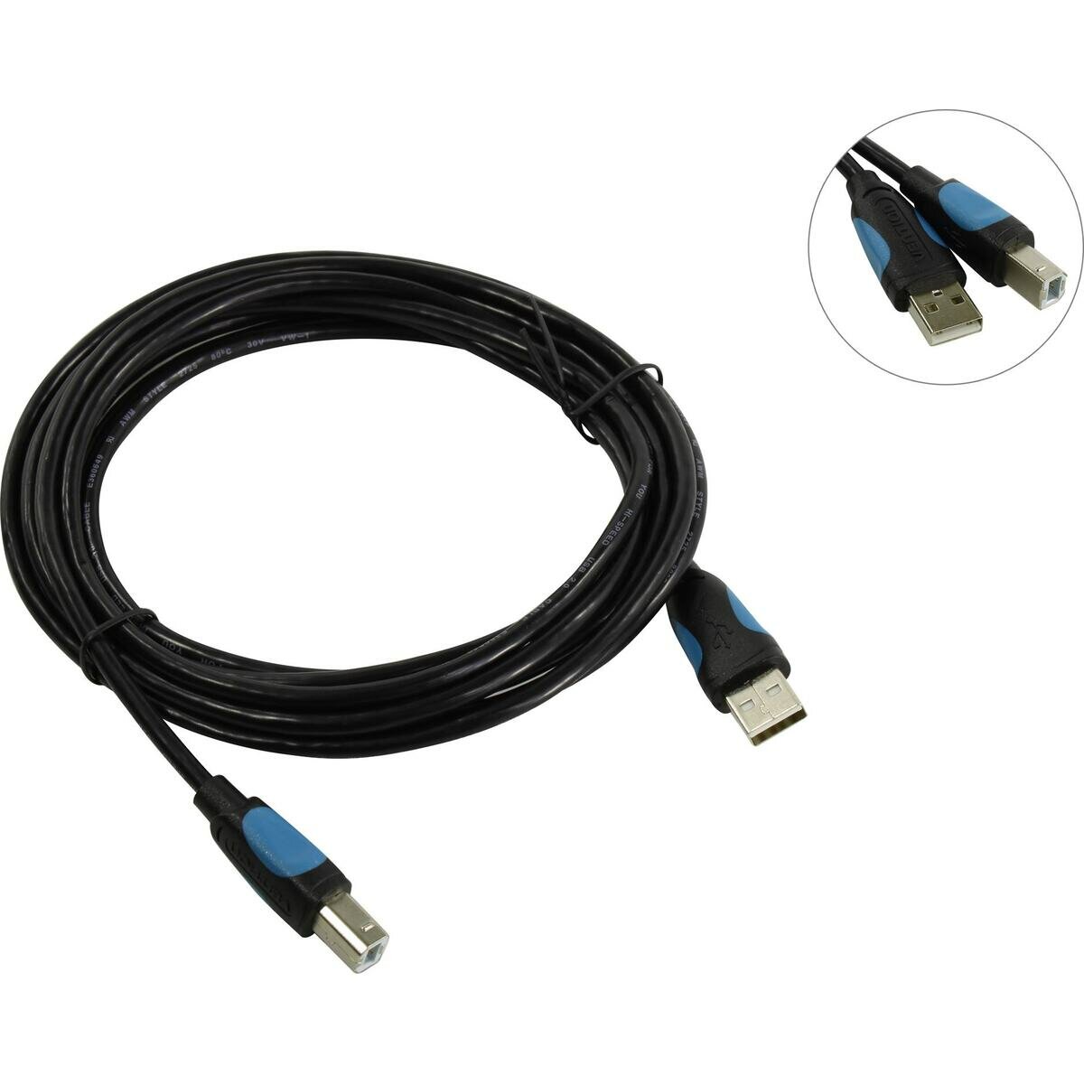 VAS-A16-B500, Vention USB 2.0 Type-AM - USB 2.0 Type-BM 5м, Кабель Vention USB 2.0 AM/BM - 5м. Черный