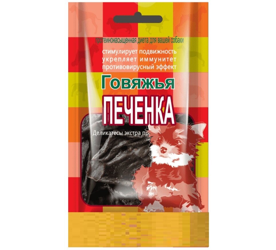 Лакомство для собак GreenQzin Говяжья Печёнка (сушеная говяжья печень) 80г