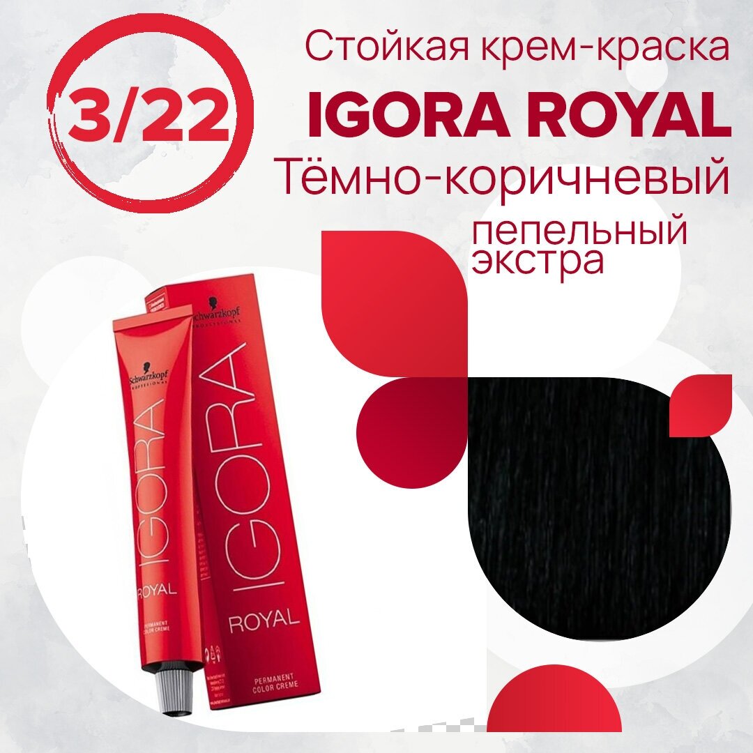 Schwarzkopf IGORA ROYAL 3-22 Тёмный коричневый пепельный Краска для волос 60 мл