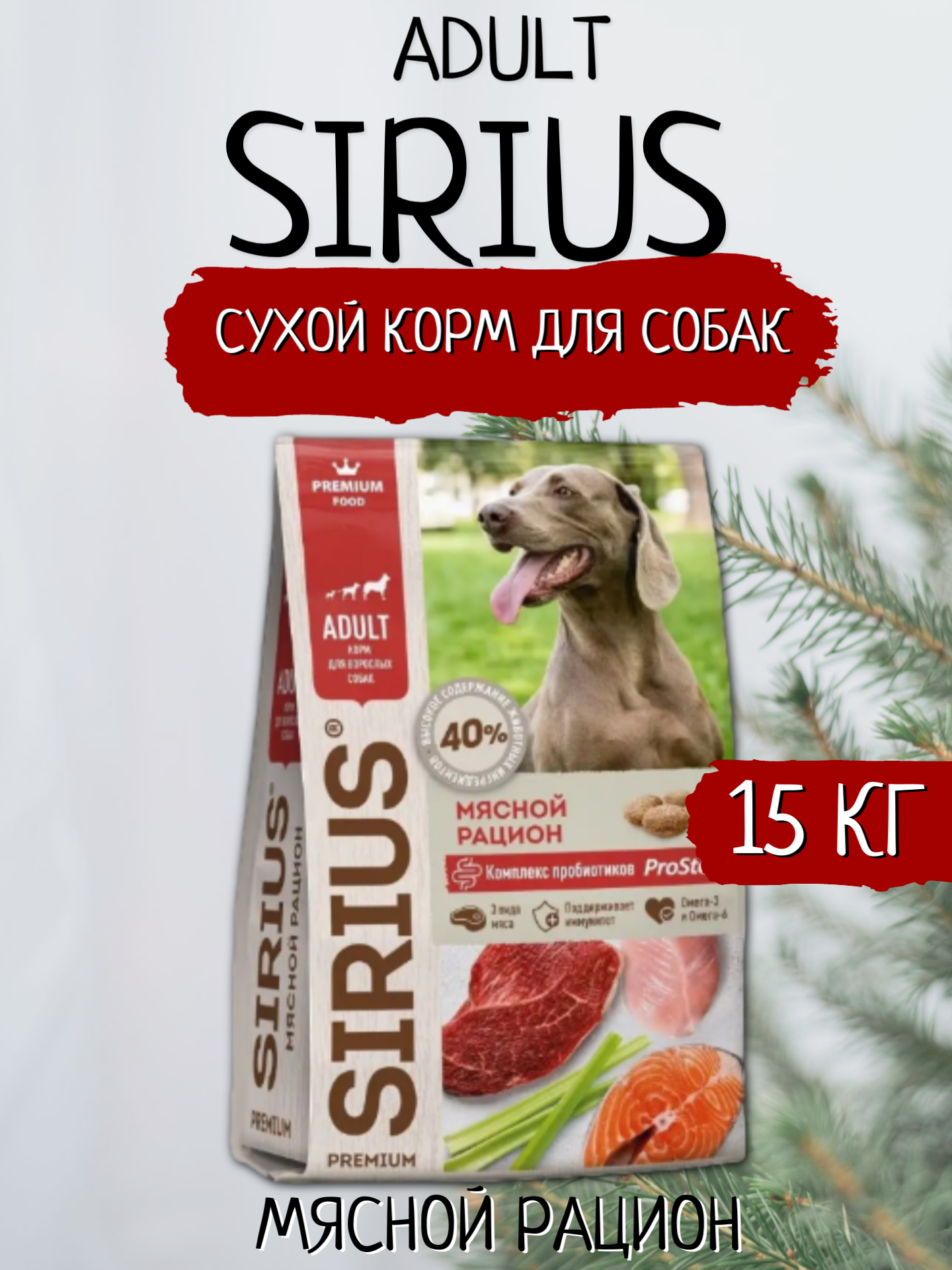 Сухой корм для собак Sirius мясной рацион 1 уп. х 1 шт. х 15 кг