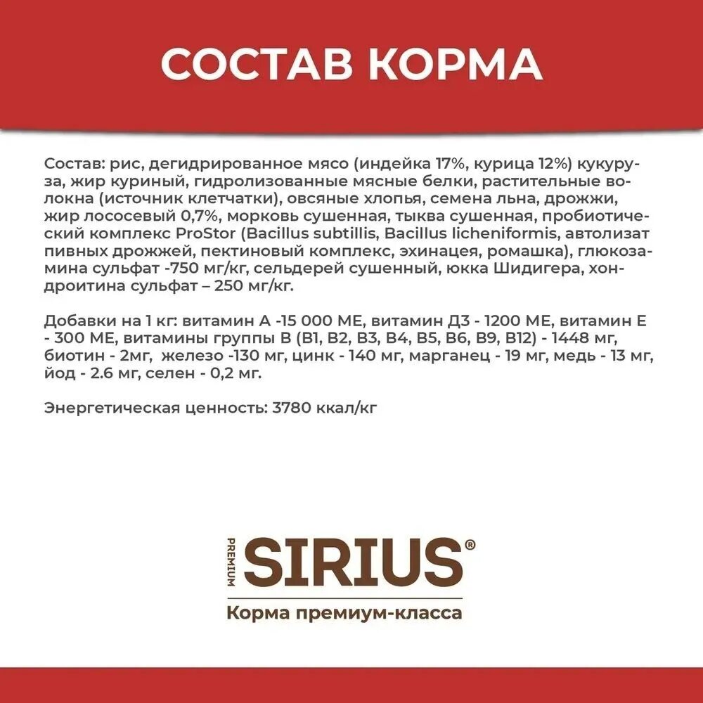 | Плюсы: | Отличный корм Сириус для крупных и средних собак. |