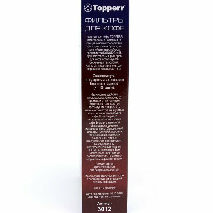 Купить Фильтры для кофеварок TOPPERR №4 (100шт.) отбеленный (3012)