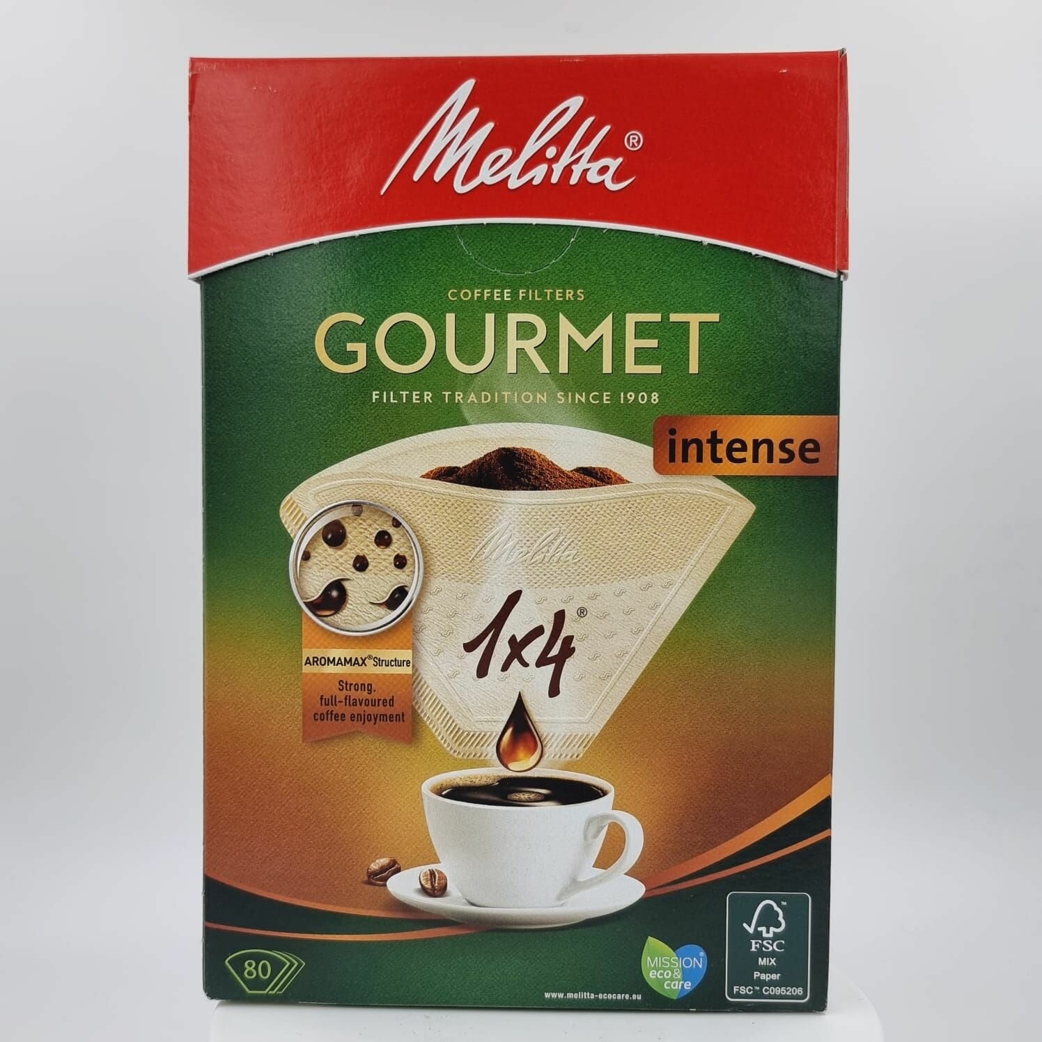 Комплект: 2 упаковки Оригинальные бумажные фильтры для кофе Melitta Gourmet Intense, 1х4, 80шт, коричневые