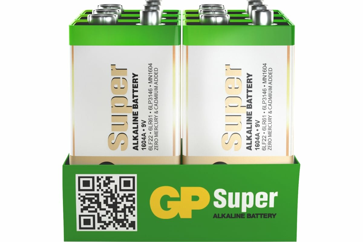 Батарейка Крона - GP Super Alkaline 9V 1604A-5CRB6 72/720 (6 штук)