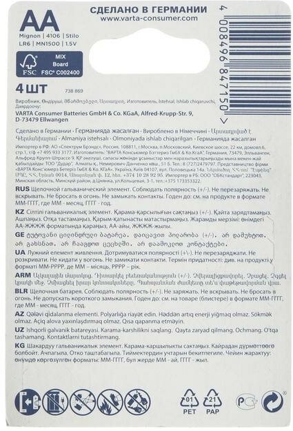 СохранитьVarta Батарейки LONGLIFE AA BL4 4008496525157 04106101414 интересное: