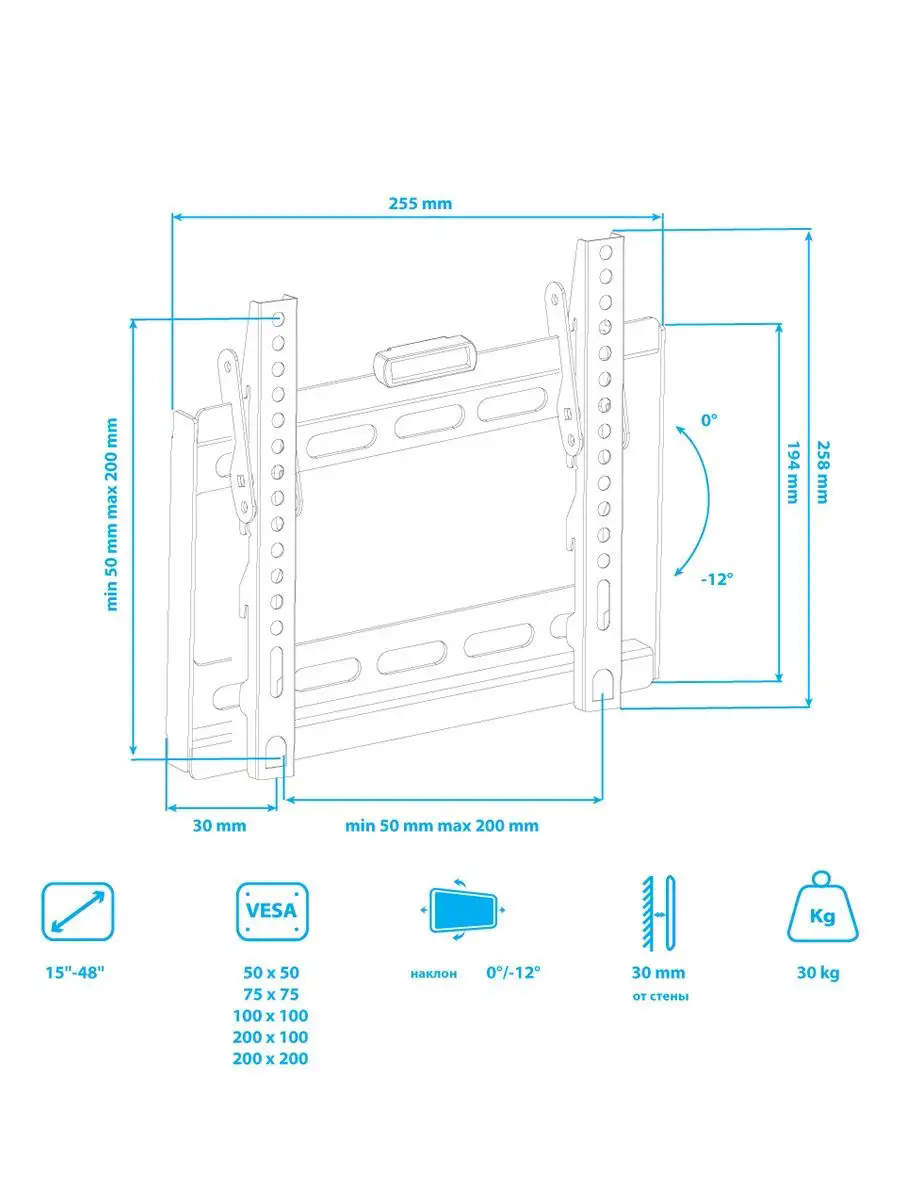 | Плюсы: | Большой диапазон диагоналей, для которых предназначен. Удобные крепления, уровень в комплекте |