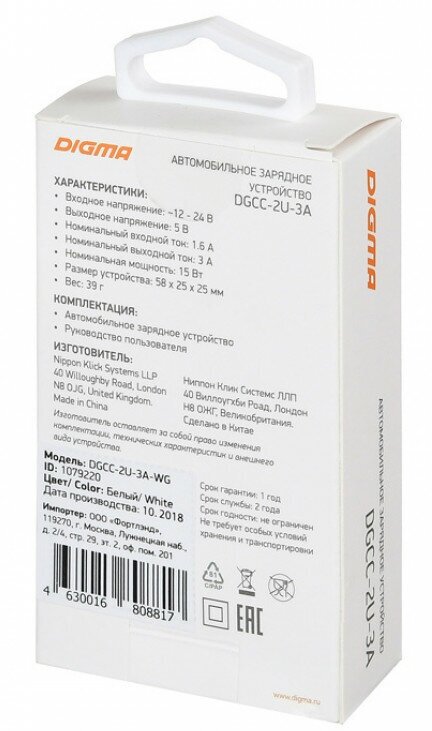 Ниже Вы можете прочитать отзывы на Автомобильное зарядное устройство Digma DGCC-2U-3A-WG, 2xUSB, 15Вт, 2.1A, белый, ознакомится с подробными характеристиками, посмотреть интересные обзоры и фотографии на Автомобильное зарядное устройство Digma DGCC-2U-3A-WG, 2xUSB, 15Вт, 2.1A, белый.