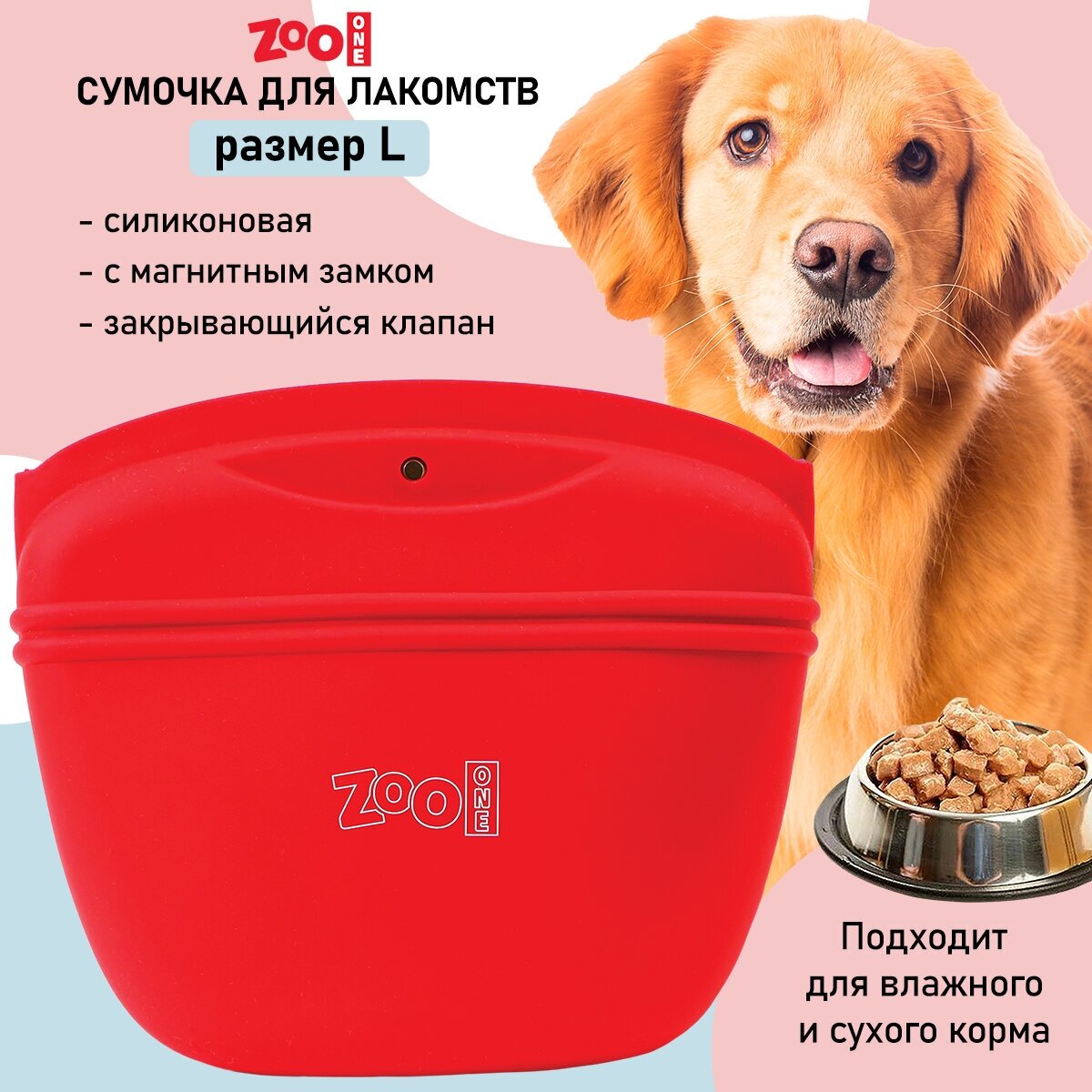 СохранитьСумочка для лакомств силиконовая с магнитным замком Zoo One для дрессировки собак, размер L (красная), 22009 интересное: