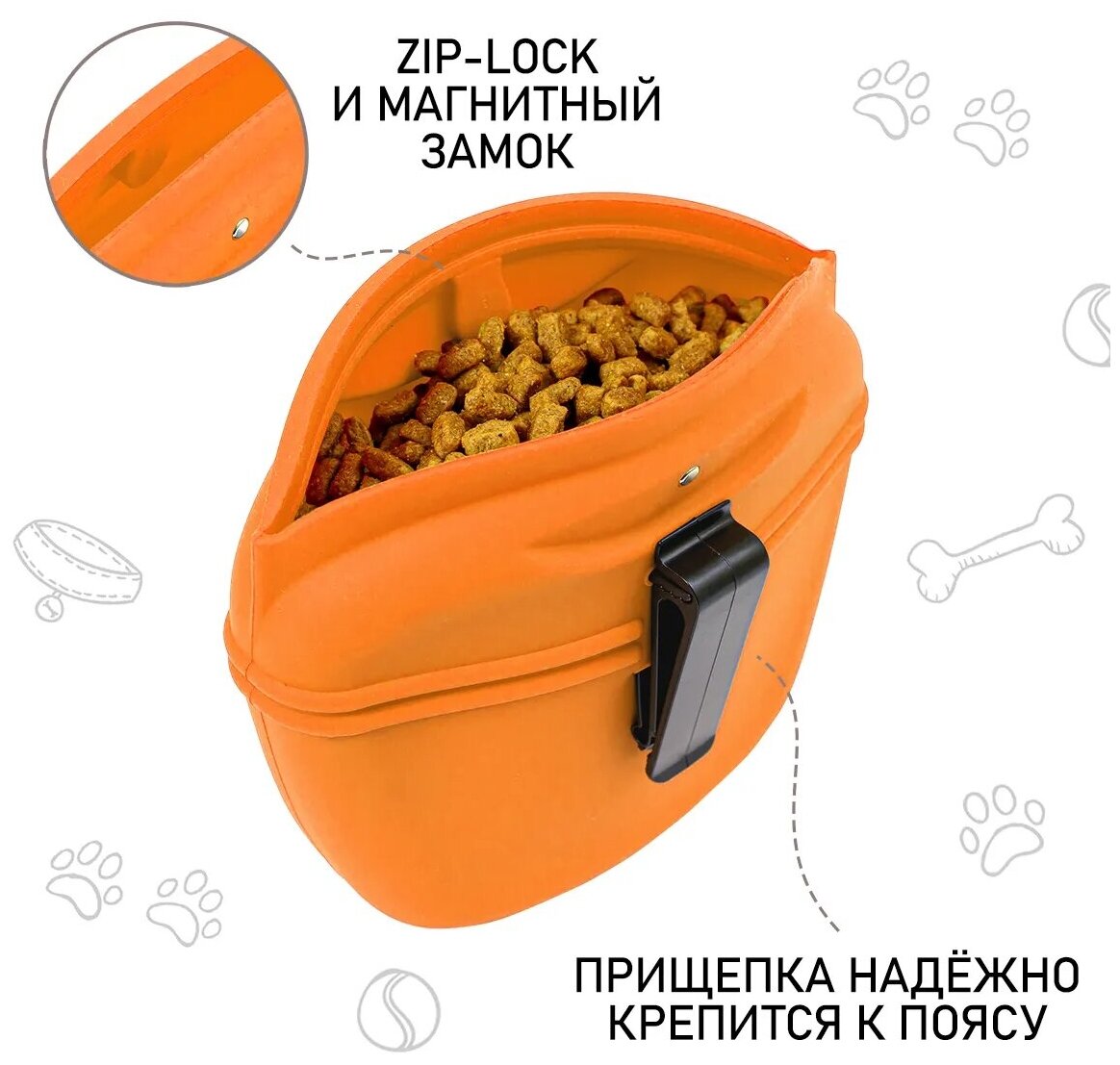 Сумочка для лакомств силиконовая с магнитным замком Zoo One для дрессировки собак, размер L (оранжевая), 22012
