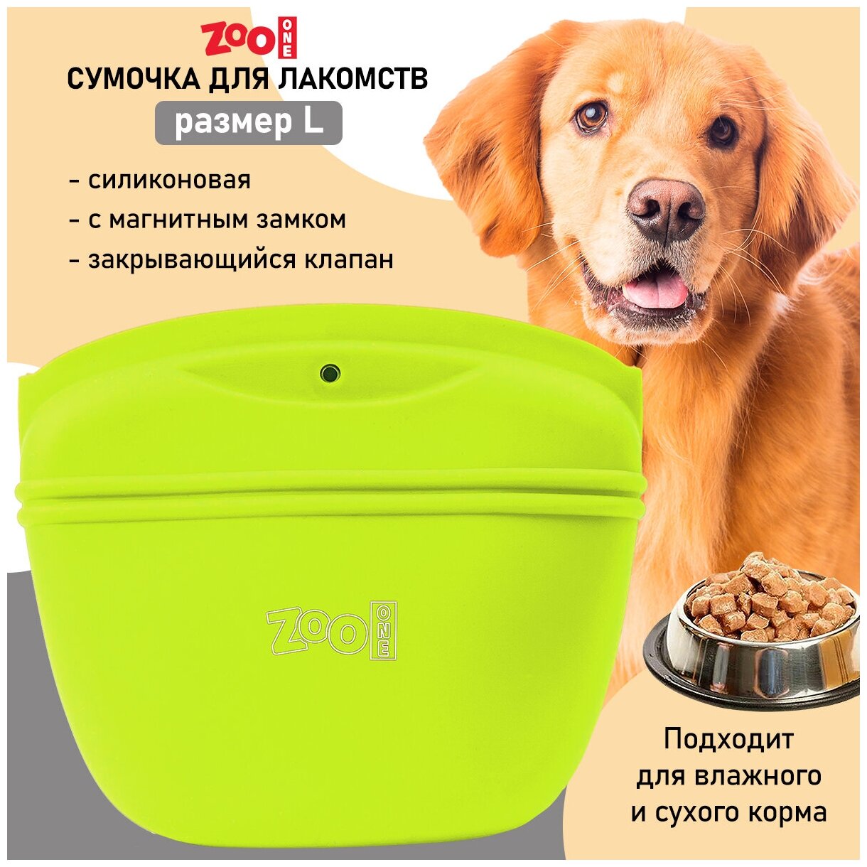 Сумочка для лакомств силиконовая с магнитным замком Zoo One для дрессировки собак, размер L (зелёная), 22007