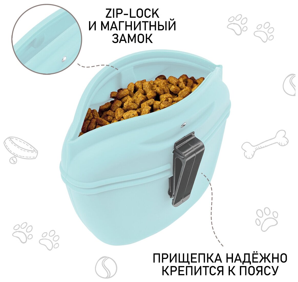 СохранитьСумочка для лакомств силиконовая с магнитным замком Zoo One для дрессировки собак, размер L (голубая), 22008 интересное: