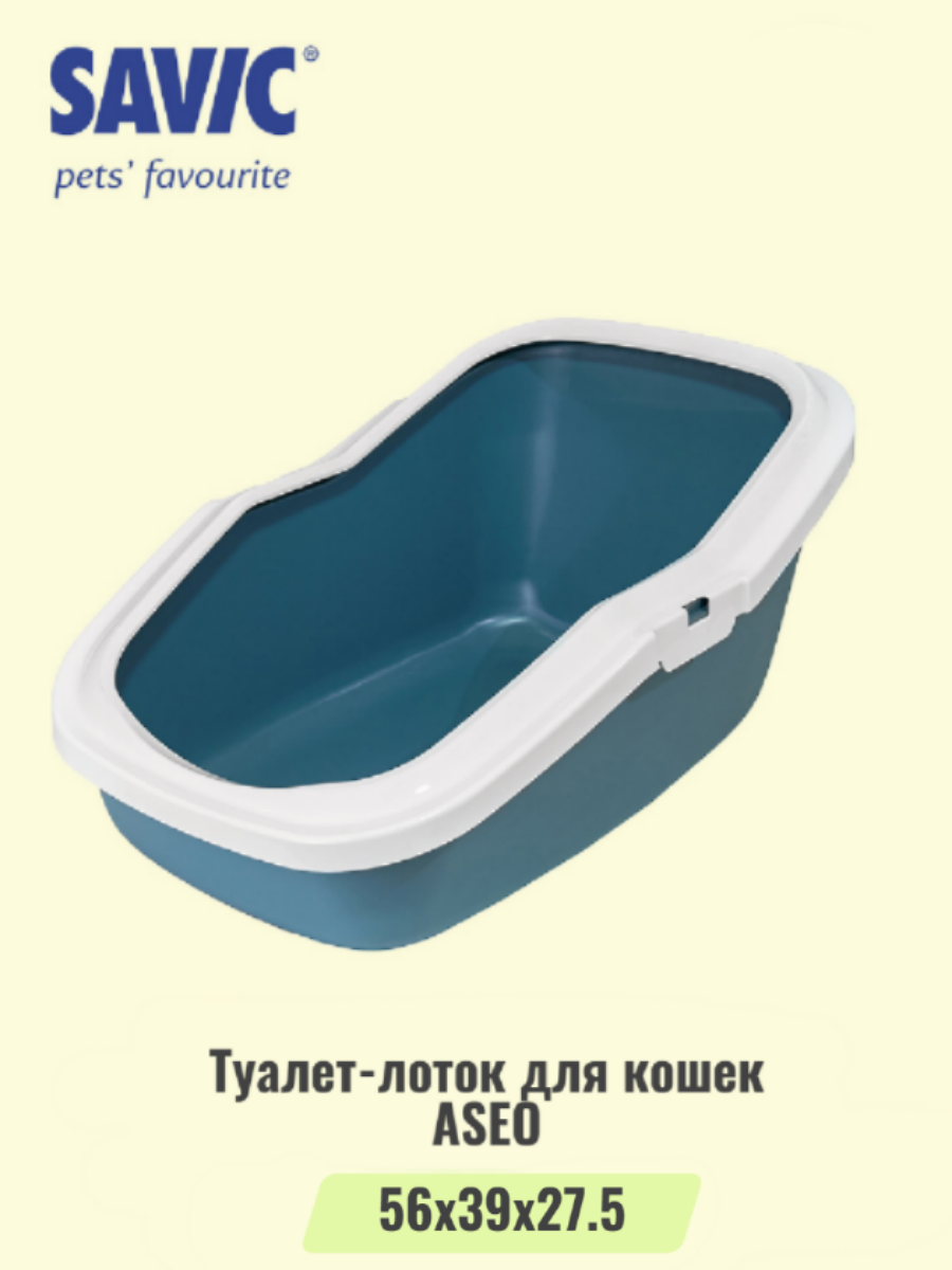 SAVIC ASEO 56 см x 39 см x 27,50 см туалет для кошек с высокими бортами голубой камень 1х6, 84786 (1 шт)