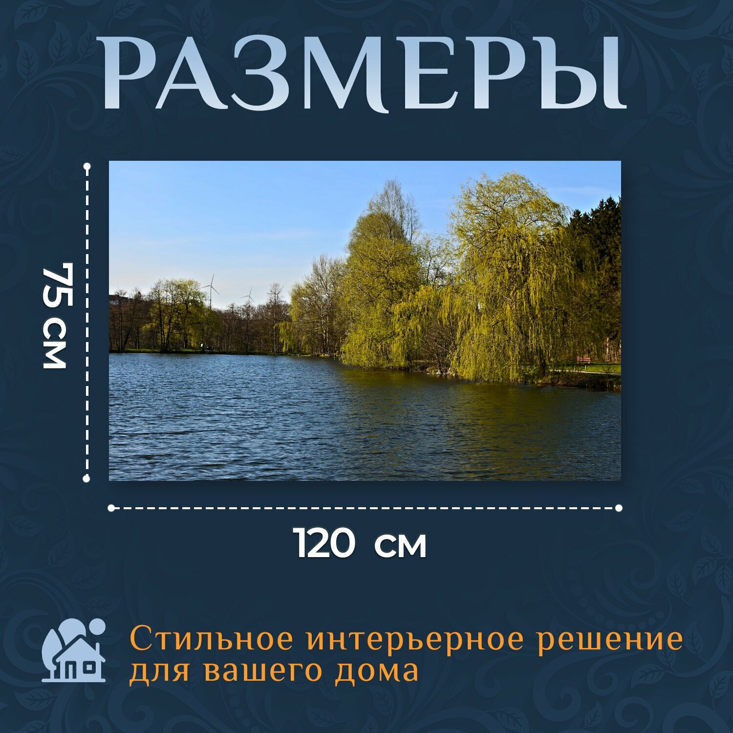 Купить Картина на холсте "Вода, озеро, ловит рыбу" на подрамнике 120х75 см. для интерьера