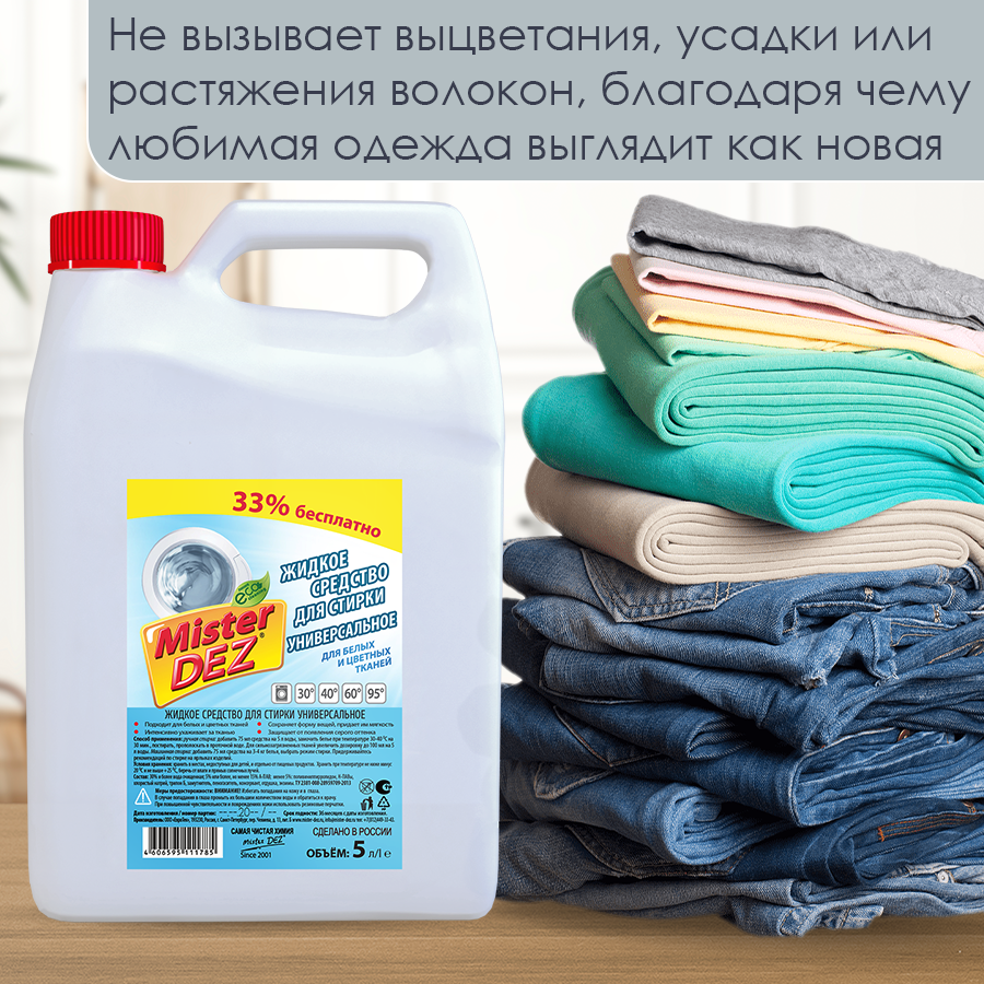 Жидкое средство для стирки Mister Dez универсальное, 5 л