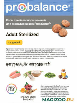 ProBalance (ПроБаланс) сухой 1,8кг Adult Sterilized для взрослых, для стерилизованных и кастрированных, с Курицей и Рисом