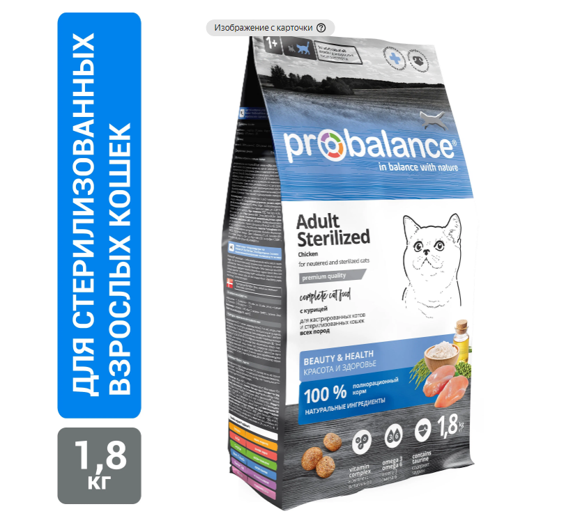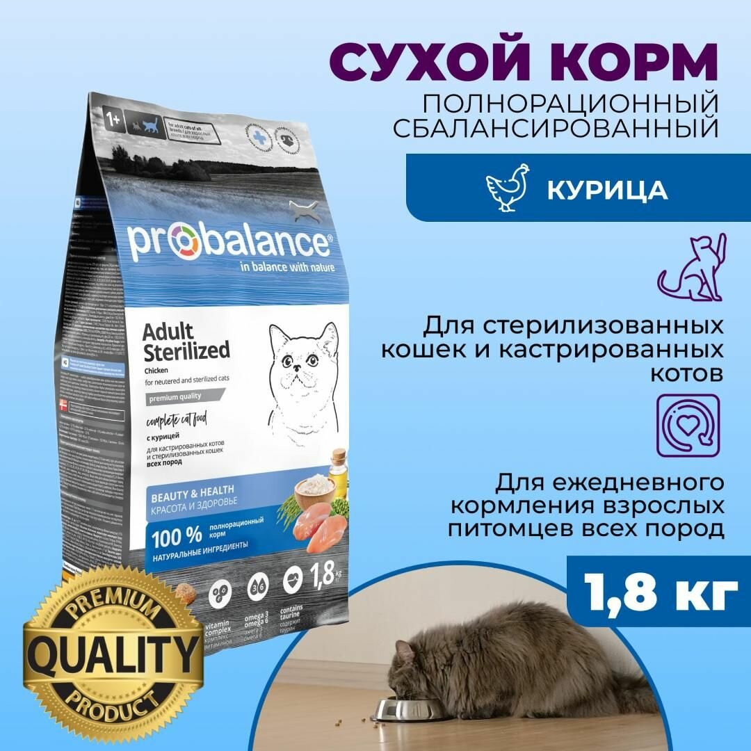 Корм ProBalance Sterilized для кастрированных котов и стерилизованных кошек, 1,8 кг