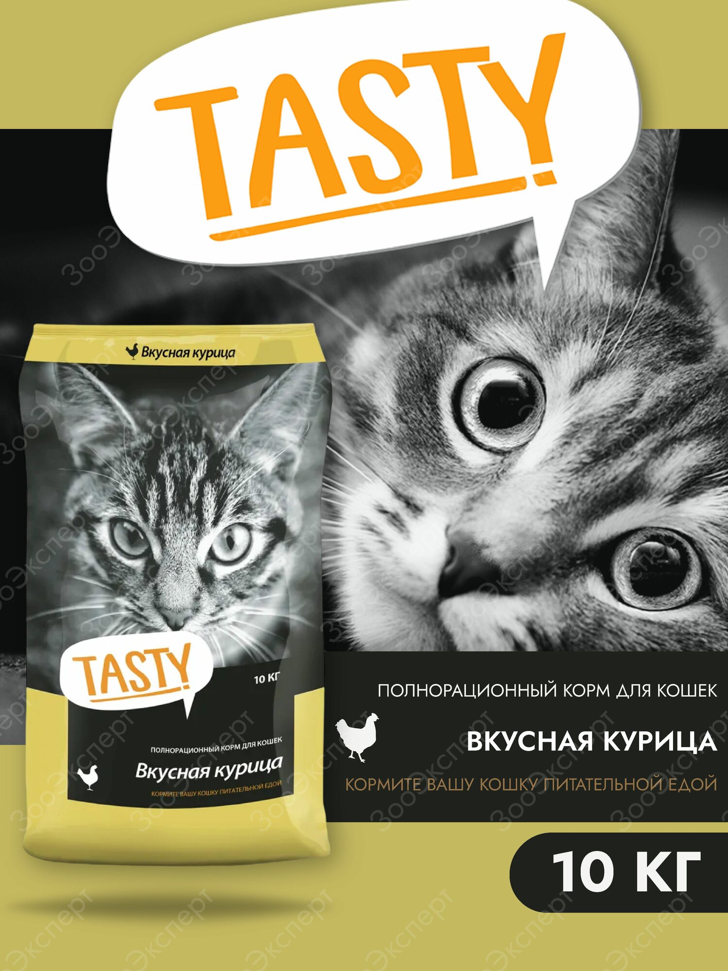 Сухой корм Tasty для взрослых кошек, курица, 10 кг