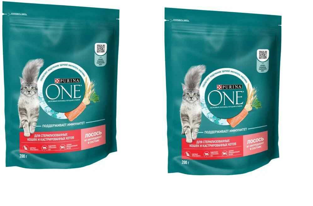 Сухой корм Purina ONE для стерилизованных кошек и кастрированных котов, с высоким содержанием лосося, 200 г 2 шт