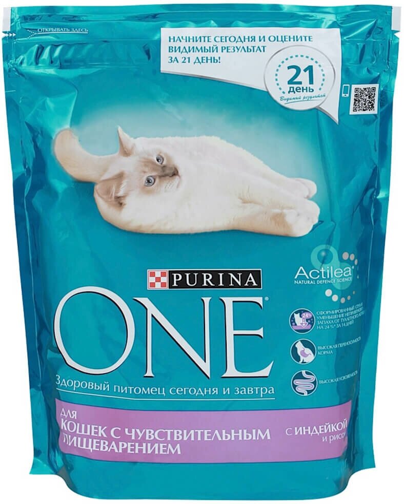 Сухой корм Purina ONE для кошек с чувствительным пищеварением, с высоким содержанием индейки, 1,5 кг