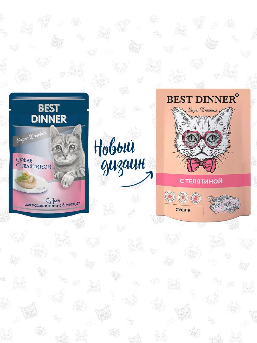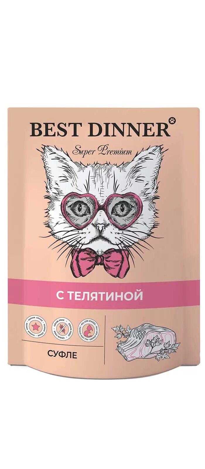 СохранитьВлажный корм для кошек (пауч) Best Dinner Бест Диннер, суфле с телятиной, 85г * 24 шт интересное: