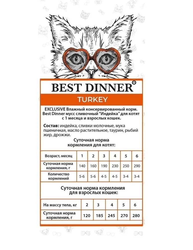 BEST DINNER EXCLUSIVE для кошек и котят сливочный мусс с индейкой 85 гр (85 гр х 24 шт)