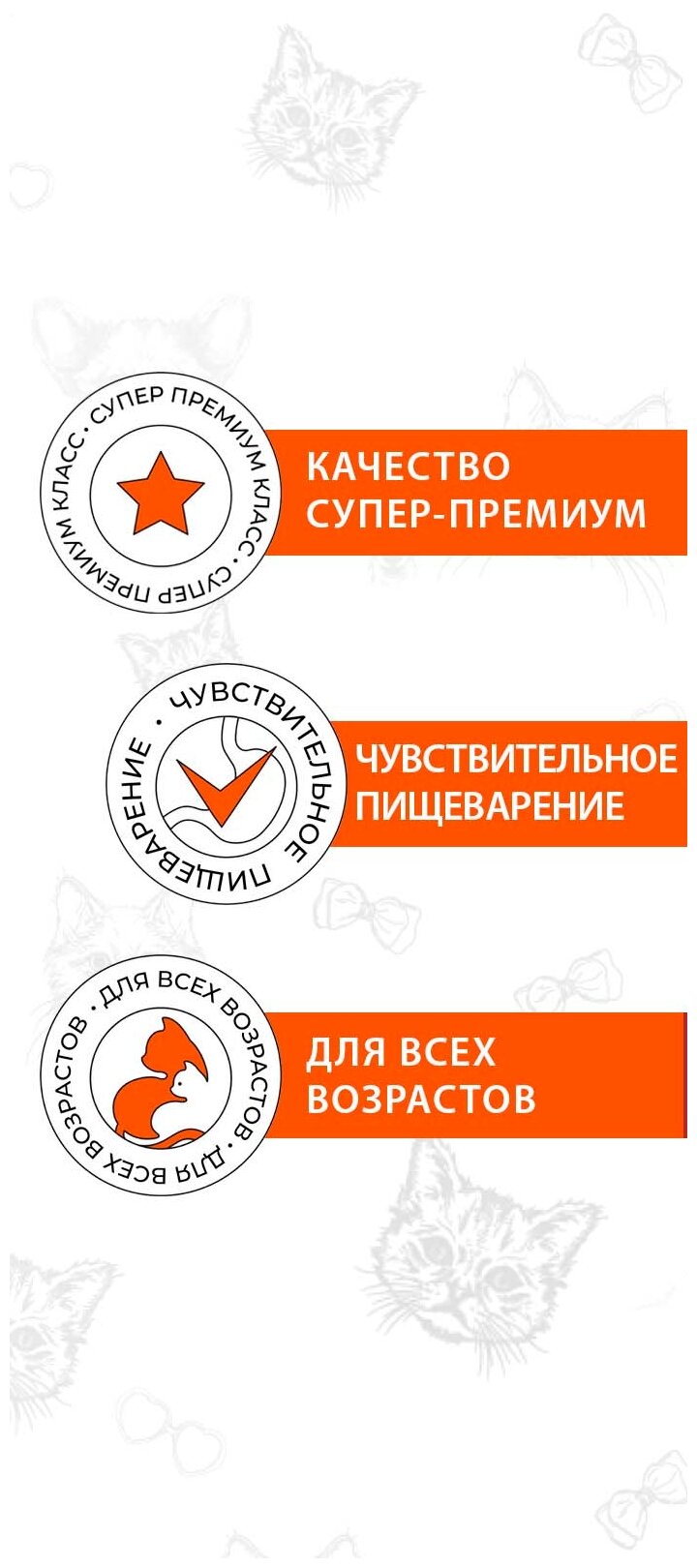 | Особые потребности | для кошек с чувствительным пищеварением |