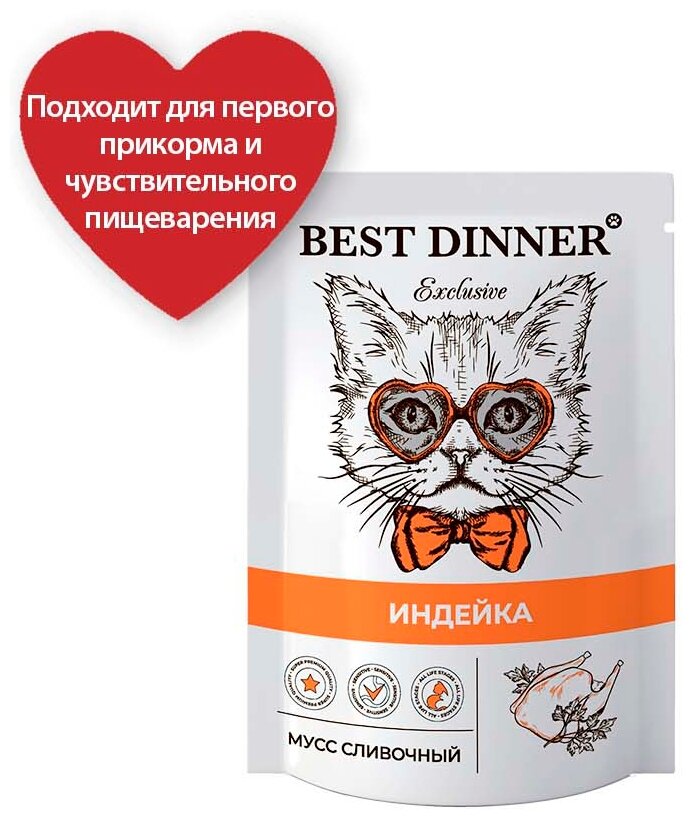 Best Dinner Exclusive консервы для кошек и котят с 1 месяца мусс сливочный с индейкой пауч 24х85г