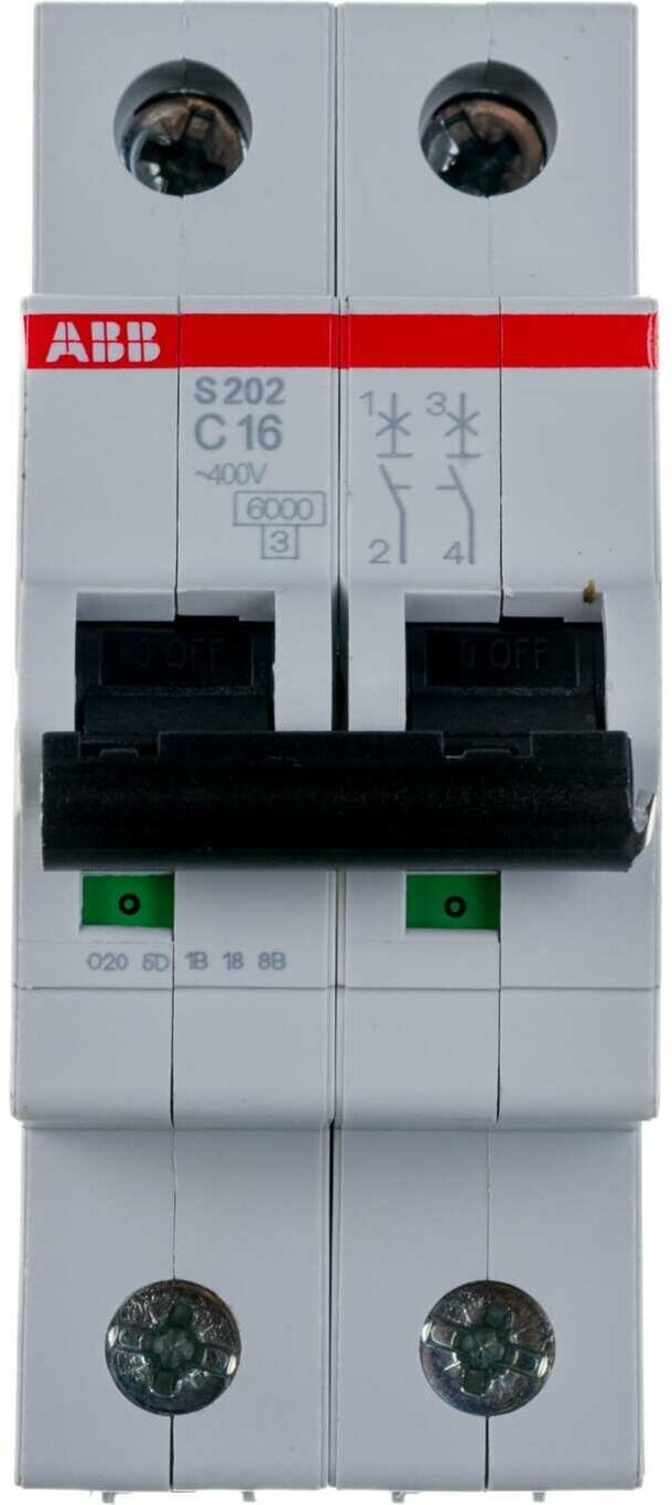 Автоматический выключатель ABB S202 C16 ампер, 2-полюсный, характеристика C