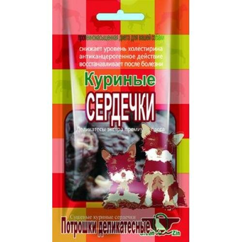 Лакомство для собак GreenQzin Куриные Сердечки (сушеные куриные сердечки) 50г
