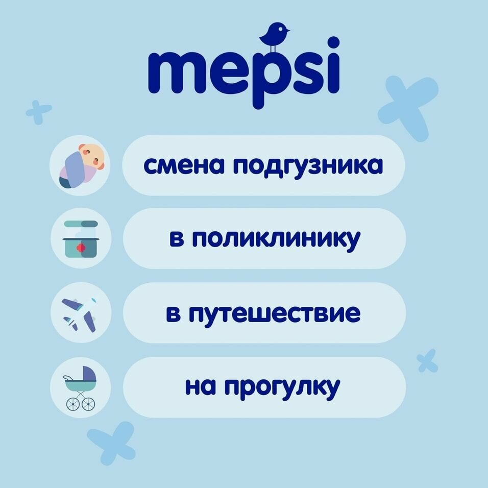 | Отзыв: | Покупаю не первый раз, очень нравятся, брала до этого салфетки памперс и хаггис, как мыльный раствор потрогала, а от мепси довольно много разных товаров беру для дочурки) |