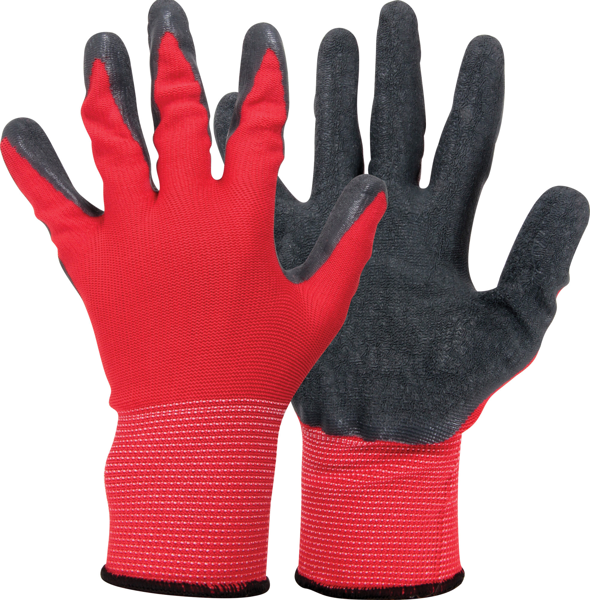 Перчатки хозяйственные размер XL покрытие ладонной части - латекс , эластичные, износостойкие. цвет красный с серым