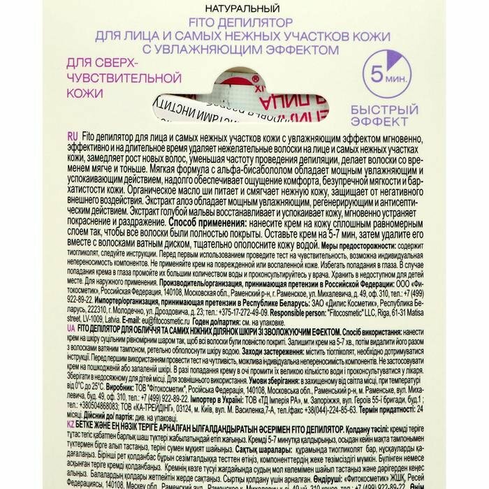 Fito косметик Депилятор для лица и самых нежных участков кожи с увлажняющим эффектом до 24 часов 15 мл