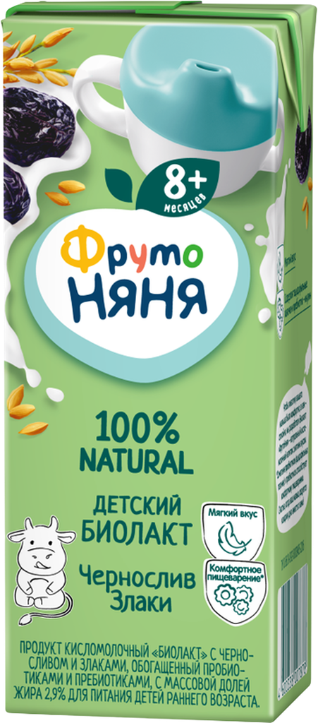 Биолакт фрутоняня с черносливом и злаками 2,9%, без змж, 200г интересное: