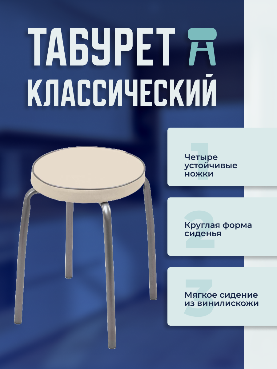 Табурет 320х320х470 мм, сл кость, сид круглое, винилискожа, на болт, на 4-х металл опорах, Nika, Фаб