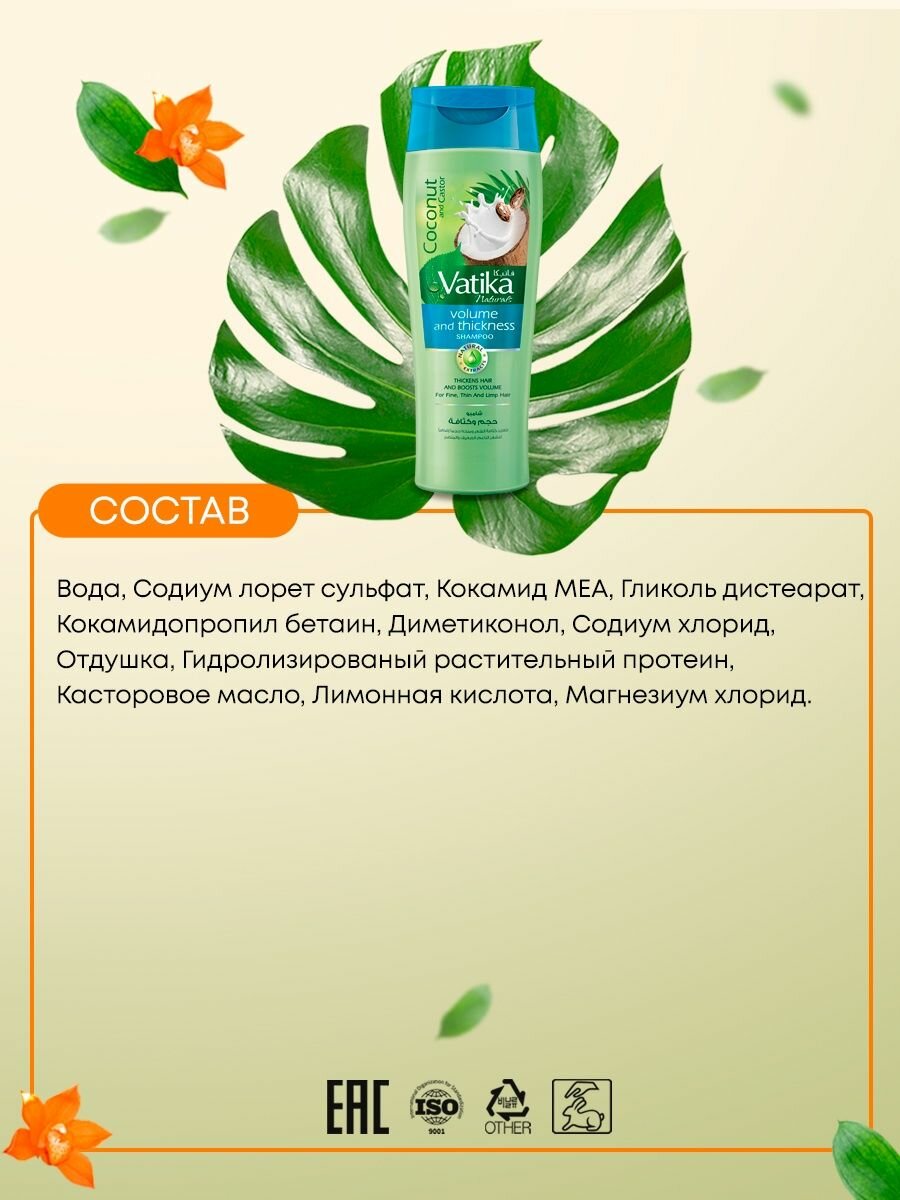 СохранитьVatika шампунь Coconut & Castor Volume & Thickness, 400 мл интересное: