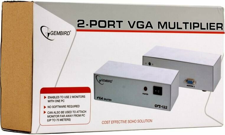 Multiplier VGA 1)2 разветвитель Gembird gvs122, hd15m/2x15m, 1 компьютер - 2 монитора .
