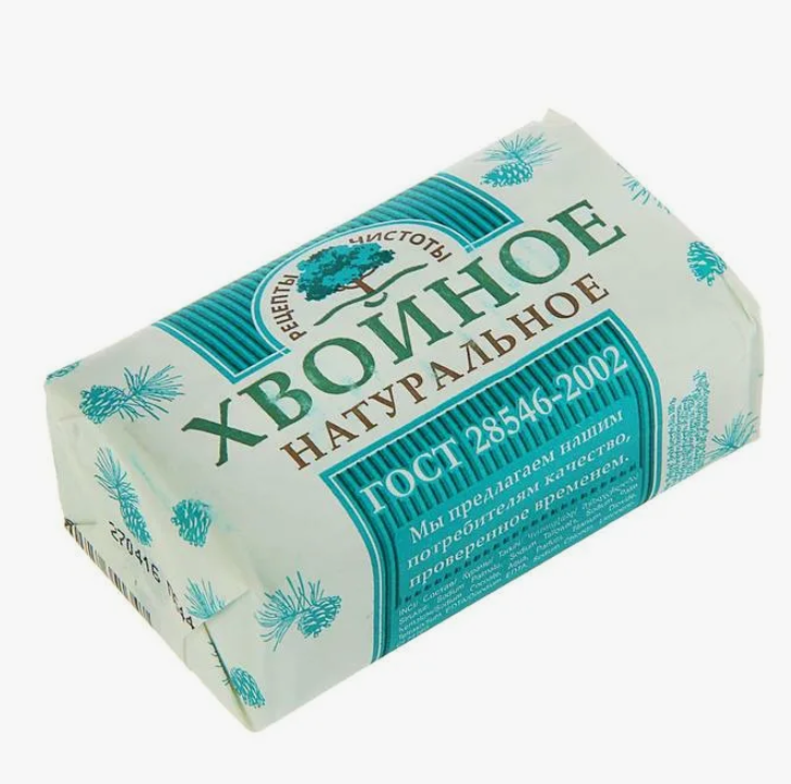 Мыло как мыло. Моет нормально Недостатки: Мыло хвойное натуральное это громко сказано. Натуральную хвою здесь изображает парфюмерная композиция |