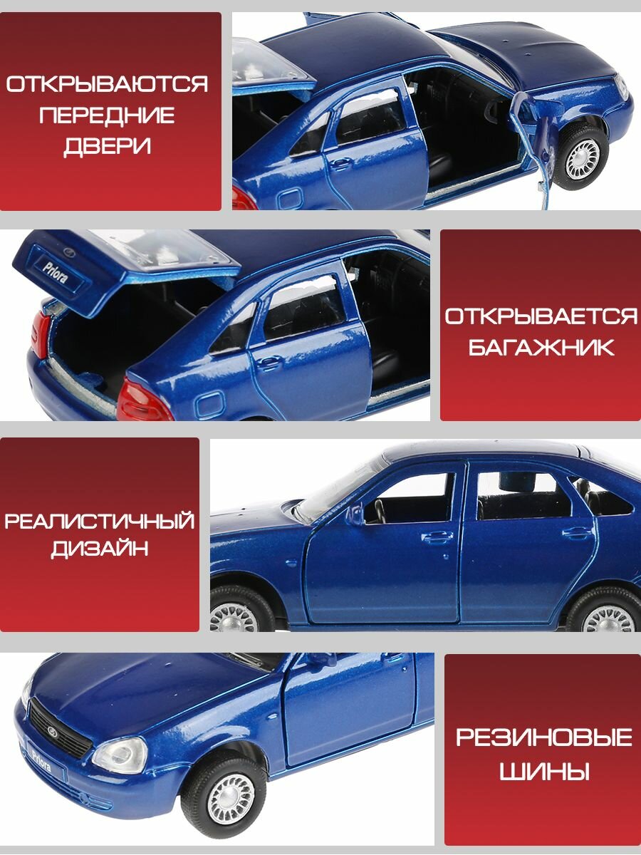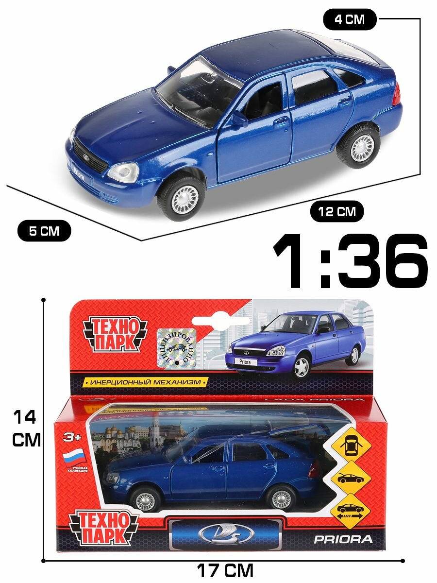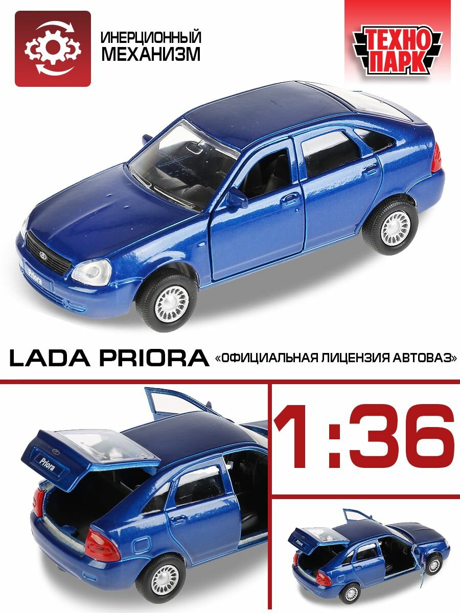 Машинка детская Лада Приора ВАЗ 2172 Хэтчбек 12 см, Технопарк, синяя, открываются двери и багажник, металлическая