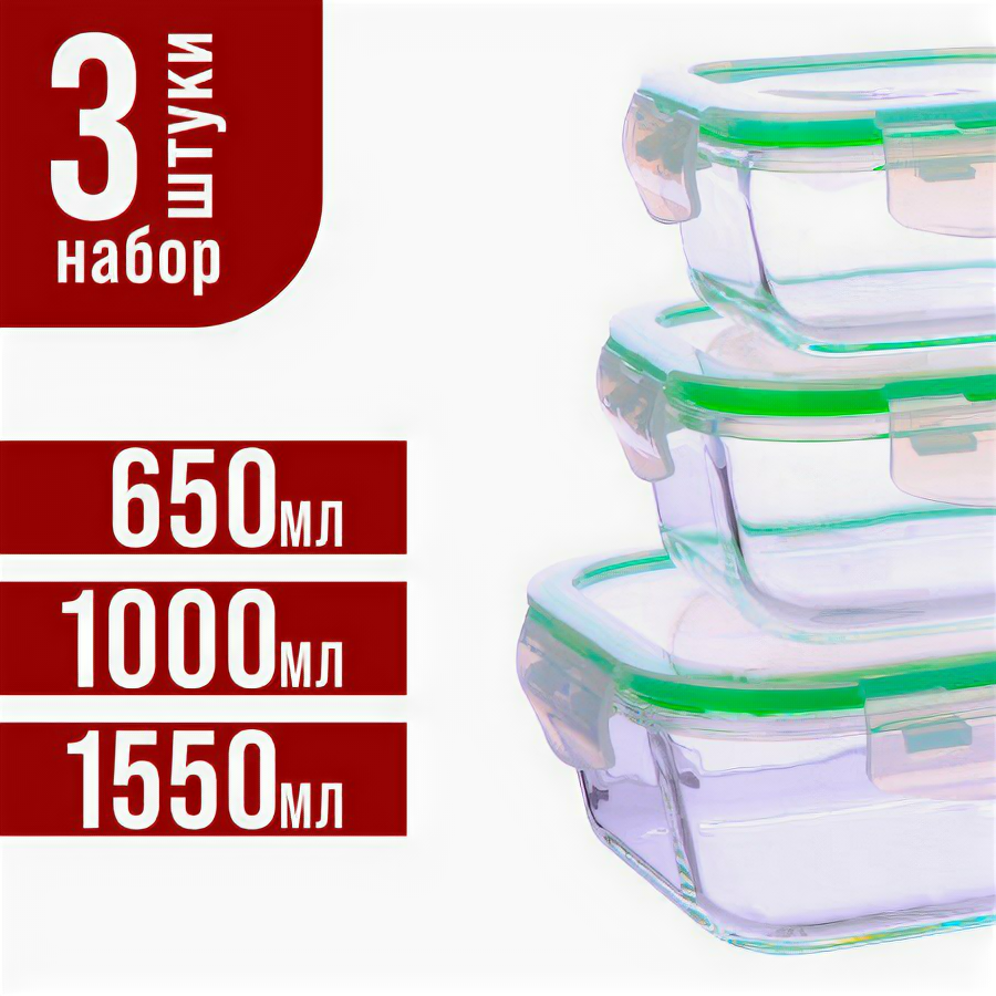 Контейнер объемом 1500 мл из жаропрочного стекла с герметичной крышкой из пластика