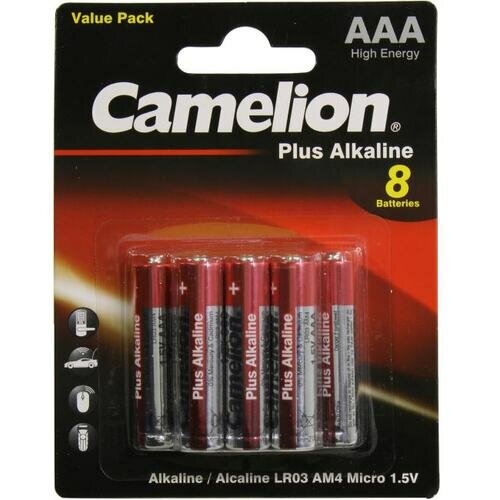 Camelion Батарейка Plus Alkaline BL8 LR03 LR03-BP5+3, батарейка,1.5В 8шт. в уп-ке