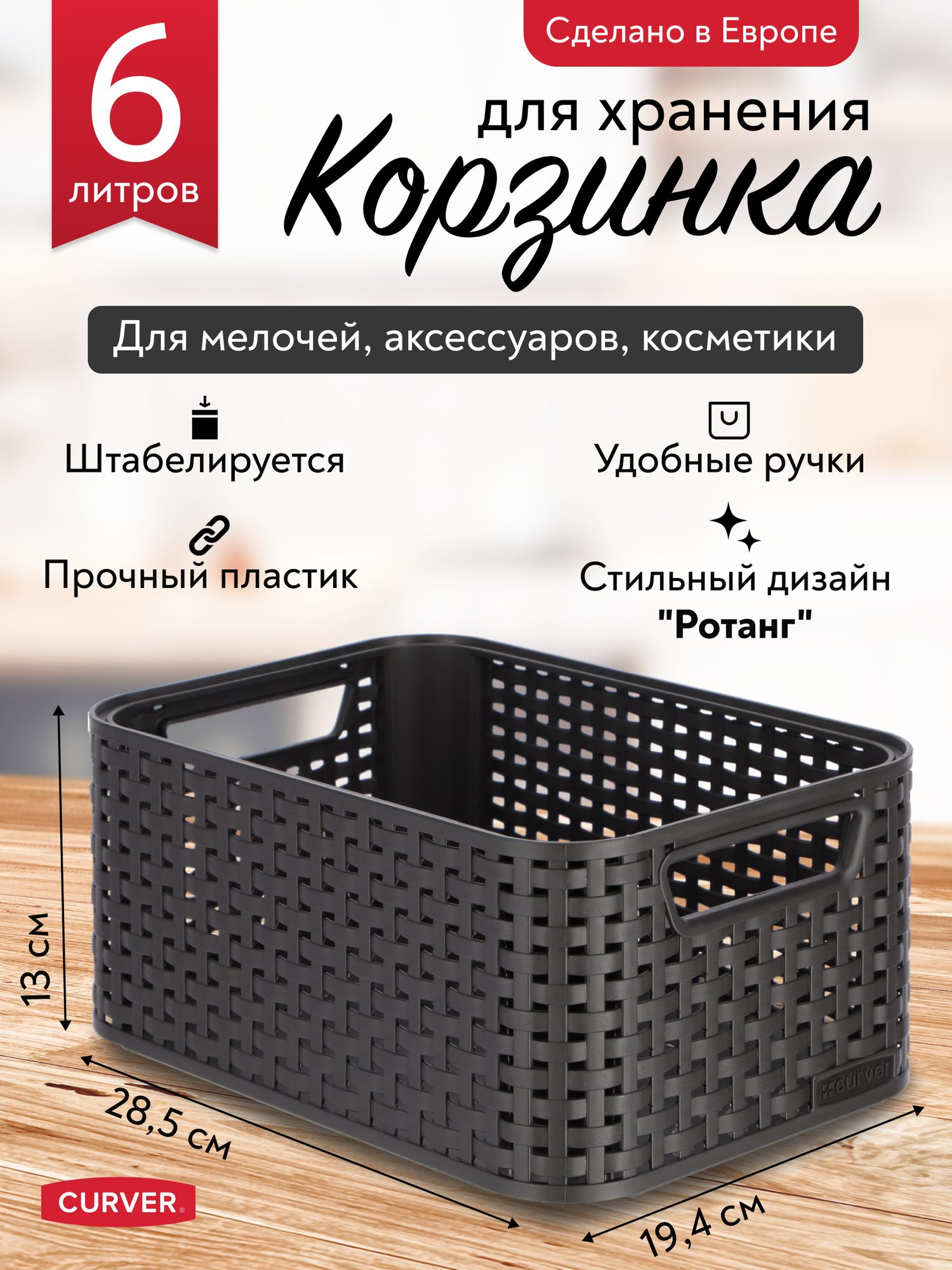 Корзина RATTAN STYLE BOX L тёмно-коричневая,CURVER