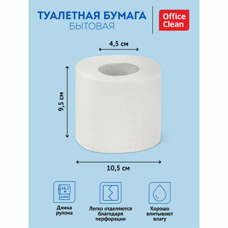 Бумага туалетная 2-слойная OfficeClean, белая, 14.5м, 12 рул/уп (279672)